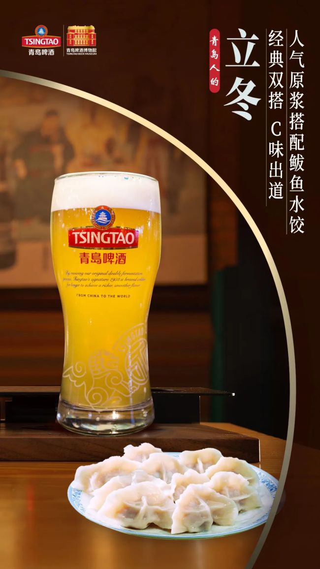 青岛饺子X青岛啤酒就是青岛人的冬日幸福味,“饺子配酒,越吃越有”。