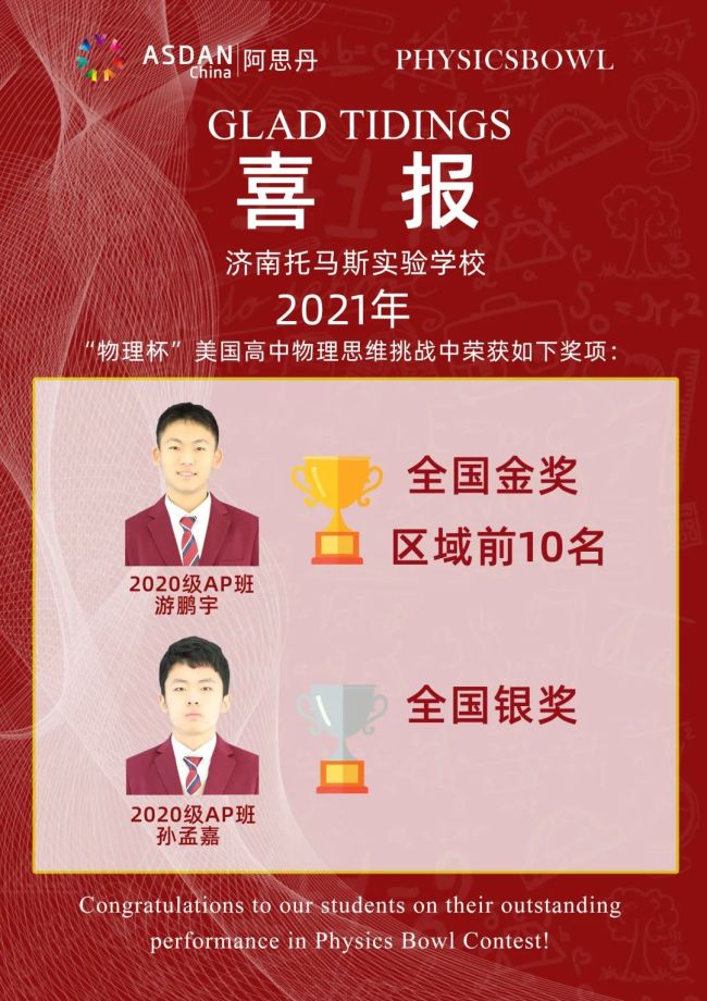 近日,济南托马斯学校喜报频传,高中部学子在各种国际物理竞赛中频频获奖!