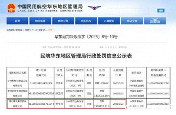 屡罚不止!河北建设集团今年9月连遭行政处罚,总金额超200万元