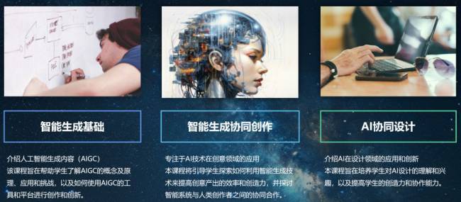 在专业课程中重新设计课程体系,融入AI相关课程或内容。如新设立《智能产品设计》和《AI协同绘画》课程,推动AI技术的应用与设计理论实践紧密结合。山东工艺美术学院联合人民美术出版社、清华大学出版社以及海南大学、福州大学、南京艺术学院等高校,编写高等学校设计专业+人工智能(Al for Design)《人工智能导论》《人工智能设计教程》《AIGC设计概论》系列教材共计二十余本。