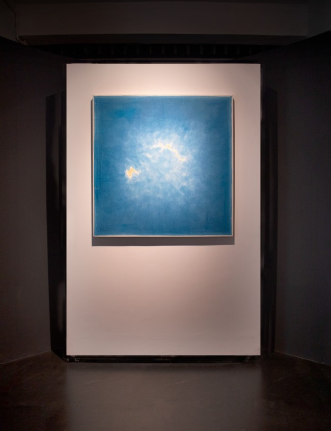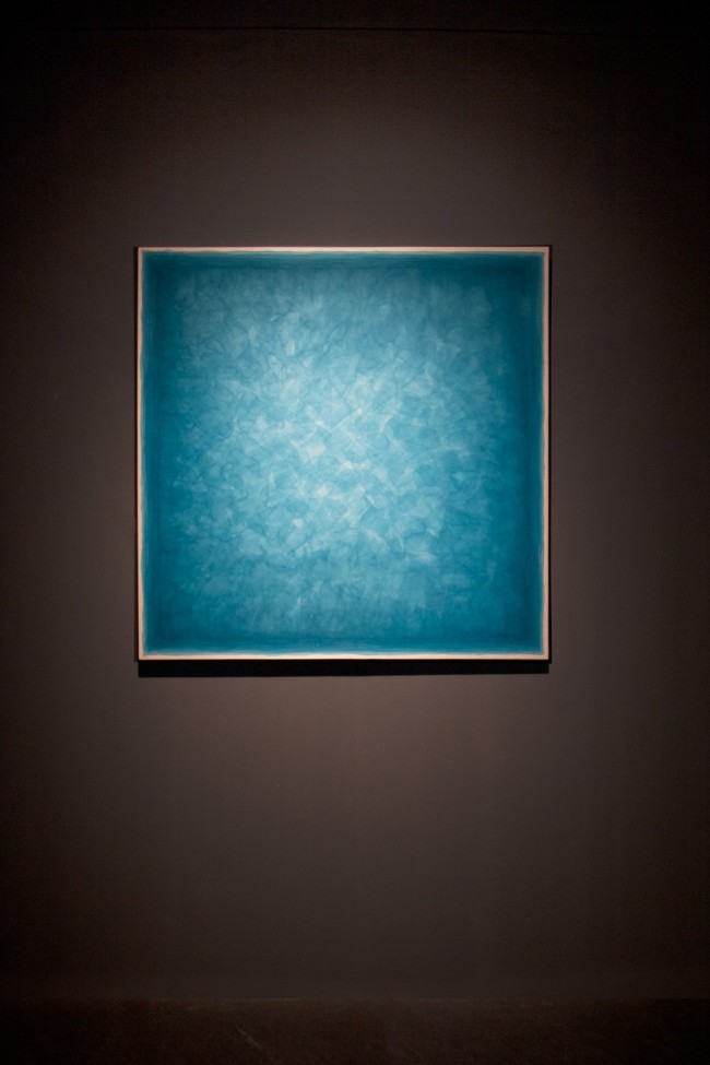 桑火尧,《蓝色宇宙》,绢本水墨,122x122cm,2015年,「重生——桑火尧境象主义作品展」现场©️人可艺术中心