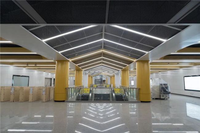 如今,冲刺阶段的4号线正以“看得见”的速度蜕变:在彭家庄站,换乘通道的吊顶已安装完毕,自动扶梯与无障碍电梯调试完成;唐冶南站的出入口玻璃幕墙反射着阳光,与背后的唐冶公园形成现代与自然的对话;邢村立交桥西站的站厅层,金属材质的波浪线条勾勒出济南“泉城”的独特韵味。