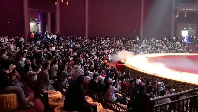 公演当日,现场氛围十分火爆。演出开始前,剧场外的等候区早已排起长队,剧场内更是座无虚席,观众全程专注观演,不少观众拿出手机记录下剧场的光影与精彩瞬间。