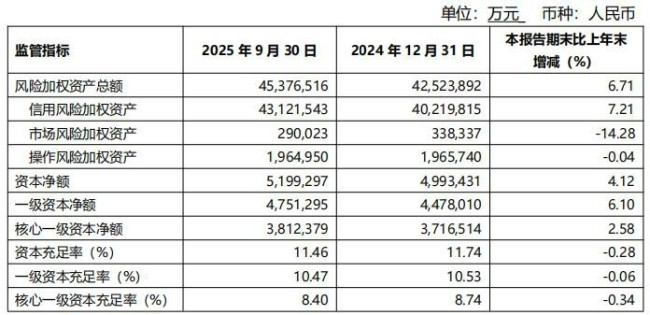 资本充足率全面下滑更是桂林银行面临的棘手问题。2025年三季度,该行资本充足率、一级资本充足率、核心一级资本充足率三项指标全线下滑,分别降至11.46%、10.47%、8.4%,较去年底分别下降了0.28、0.06、0.34个百分点。这对于一家怀揣IPO梦想的银行而言,无疑是一个关键的制约因素。