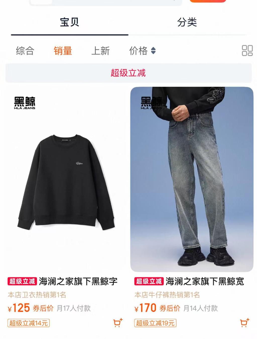 不过,其他品牌,其潮牌品牌“黑鲸”天猫旗舰店月销量最高的产品付款人数也只有17人,即便在“双11”购物节期间也没有多少销量。