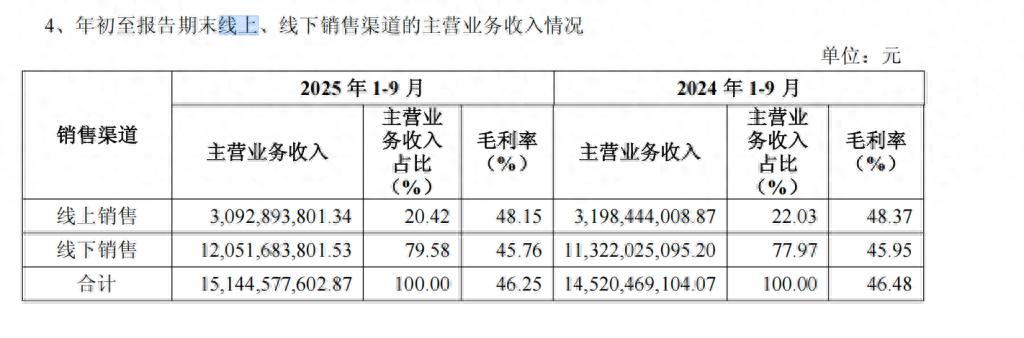从销售渠道来看,海澜之家约八成收入来自线下,线上销售占比从去年同期的22.03%同比下滑到20.42%。作为对比,同行七匹狼2024年度线上销售占比为36%左右,红豆股份2024年时线上营收占比为24.09%,森马线上营收占比超40%,雅戈尔中报显示其线上收入占比约14%。
