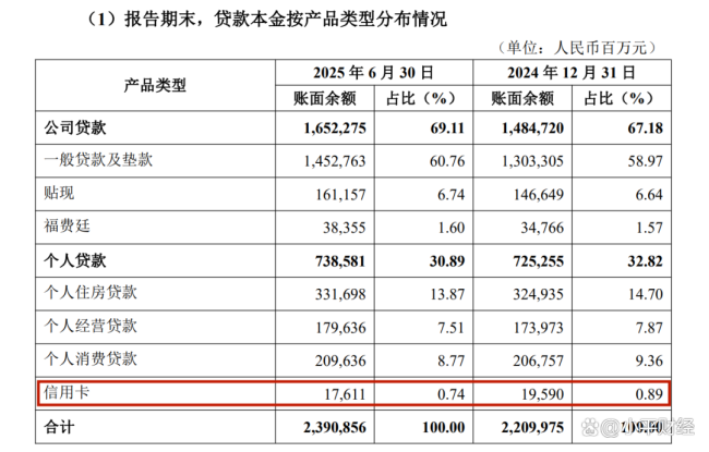 半年报显示,2025年6月末,北京银行的零售贷款中,个人住房贷款、个人经营贷款、个人消费贷款规模分别为3316.98亿元、1796.36亿元、2096.36亿元,较上年末增长67.63亿元、56.63亿元、28.79亿元。而更能体现用户活跃度和黏性的信用卡规模176.11亿元,较上年末减少19.79亿元。