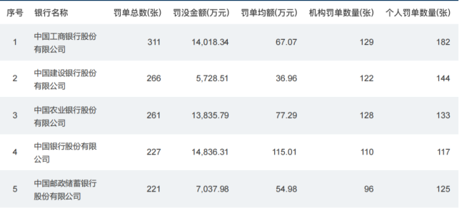 一级分行中,广东省分行、四川省分行、海南省分行、河北省分行等均收到罚单,其中广东省分行被罚合计176.54万元,河北省分行罚款金额达221万元,海南省分行罚款187万元,四川省分行则被罚款160万元;