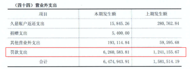 据诸城农商银行年报披露,截至2024年末,该行全部关联贷款余额共计6.02亿元,但该行前十大关联方借款人的借款金额却高达7.58亿元。上述数据出现违反逻辑错误,这说明诸城农商银行关联贷款的这两项数据至少有一项为虚假记载。此外,该行2024年的罚款支出高达626万元,同比增幅超过400%。