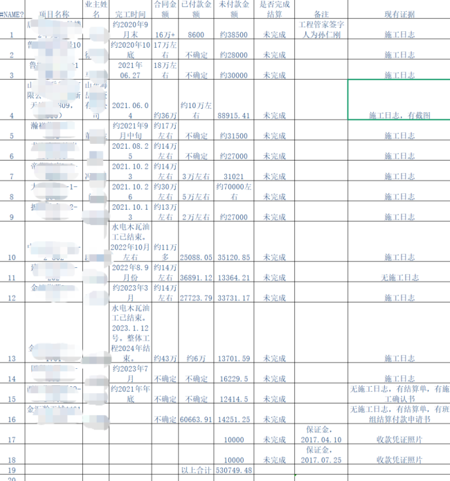 (唐先生整理的欠款清单)