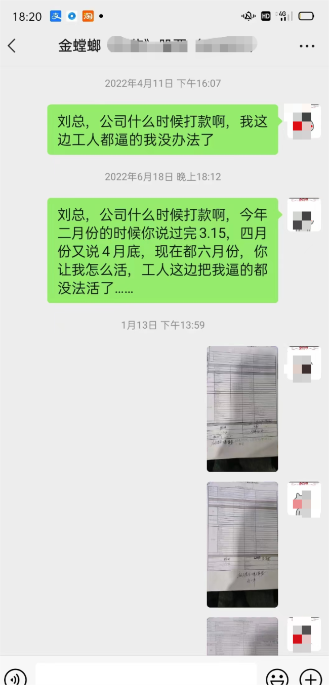 (与金螳螂济南门店负责人催要欠款的聊天记录)