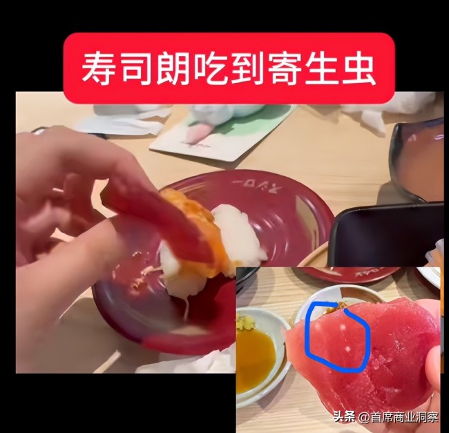 而近日,就有消费者在社交平台爆料,称她在北京排队3小时吃寿司郎,在就餐时却发现鱼片上有寄生虫。