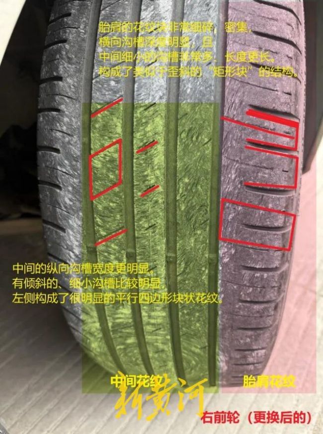 然而,近期宋先生在驾驶过程中发现,车辆出现明显的跑偏现象,行驶时方向盘需要持续调整才能保持直线,给行车安全带来不小的隐患。“一开始以为是轮胎气压不足,后来去维修店检测才发现,问题出在几年前更换的右前轮胎上。”宋先生表示,维修人员告诉他,车辆右前轮胎的品牌、花纹,与其他3条原厂轮胎完全不一致,而这种同轴轮胎花纹不符的情况,正是导致车辆跑偏的主要原因。