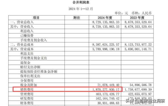 2024年,其母公司销售费用仅1.57亿元,而合并销售费用高达18.7亿元;近90%的销售费用都下沉到各家子公司。