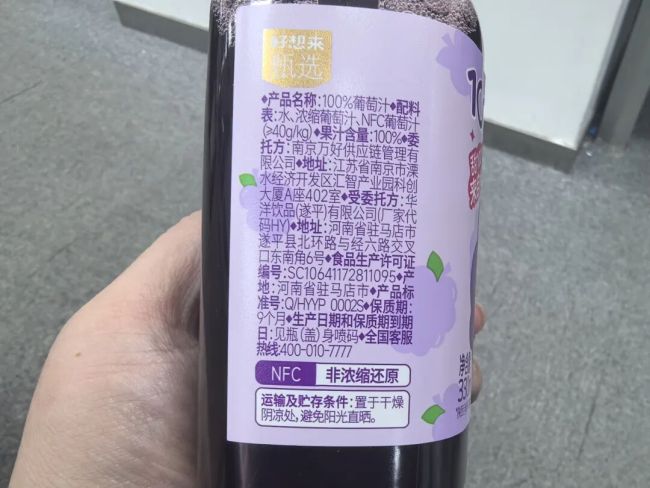 为了更好了解情况,记者致电好想来全国客服热线,工作人员表示好想来甄选的这款“100%果汁”系列是均符合包装标识的标准,对于委托生产的产品,好想来有着严格的要求,始终秉承自研自检的原则对生产商进行严格要求。