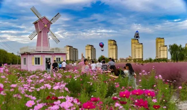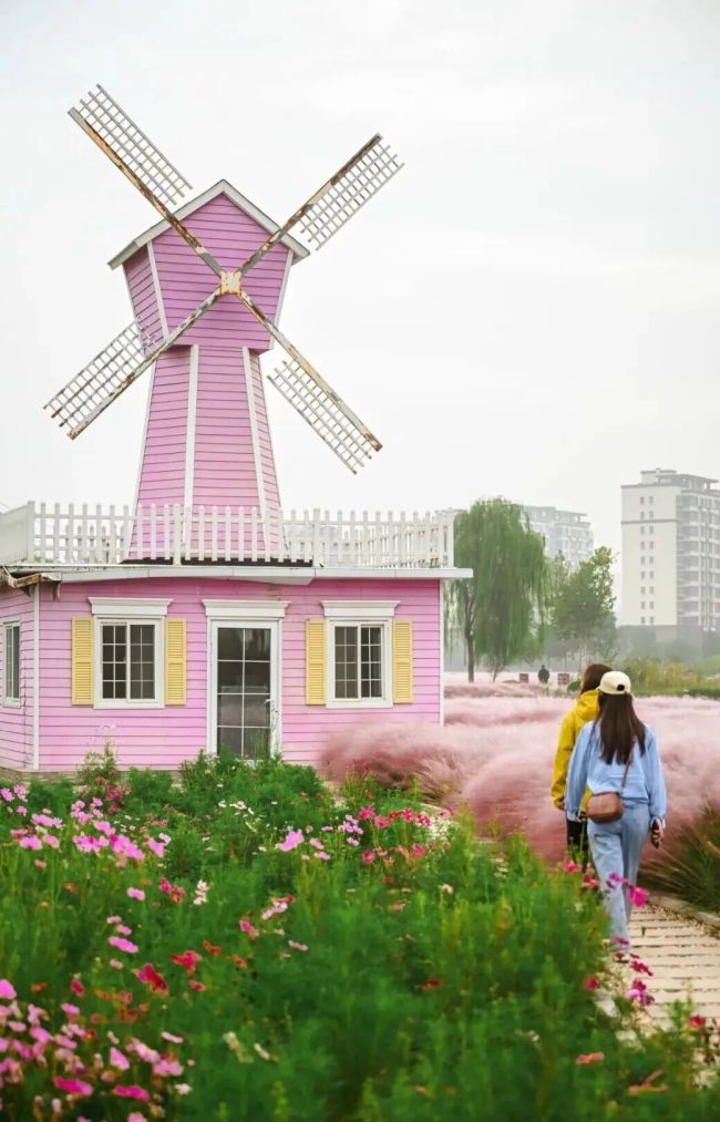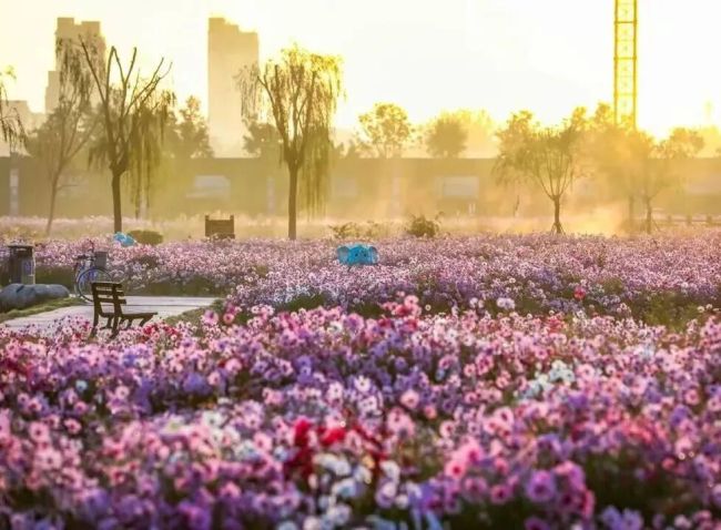 在城区以西的郊野公园,格桑花和粉黛乱子草开得正艳、美不胜收,漫步花海,仿佛坠入了童话世界。沿着蜿蜒的木质栈道缓步前行,不经意间,一片会发光的原野在眼前徐徐展开——那是粉黛乱子草织就的梦幻世界。它们像被夕阳揉碎的晚霞,又似大地上浮起的半透明薄雾,以柔和的粉色温柔包裹四野。