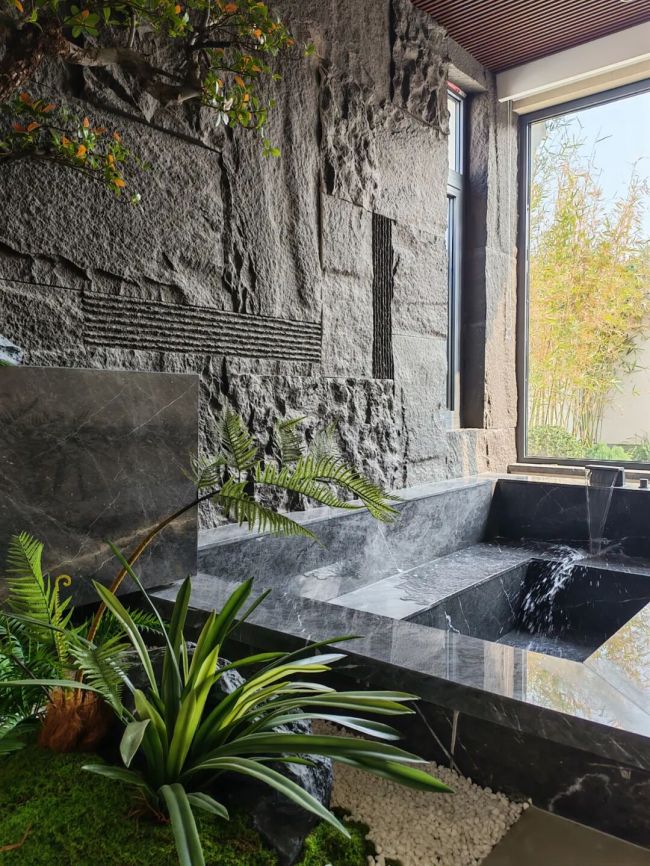 孟里悦·私汤温泉民宿坐落于商河县孟庄铺村,因与“梦里约”谐音而得名,既贴合村名的渊源,又暗含“有朋自远方来”的待客之道。这里的建筑风格,是北方传统四合院的现代演绎。坡面屋顶高低错落,青灰色瓦片在阳光下泛着温润的光泽。院内回廊相连,青石板路蜿蜒其间,角落摆放着陶罐栽种的翠竹,廊下悬挂的铜铃随风轻响。它将温泉的柔、建筑的韵、自然的息,酿成舌尖回甘的诗。室内私汤被木质与石墙温柔环抱,暖灯漫过池沿,连呼吸都染上琥珀色的慵懒,仿佛时间在这里打了个盹,任人偷享片刻混沌。在这里,与知己相约一场身心的疗愈之旅,不亦乐乎?