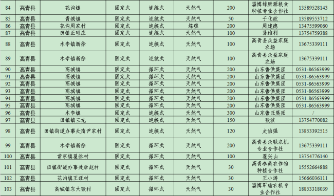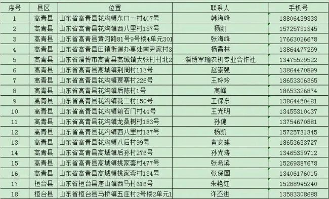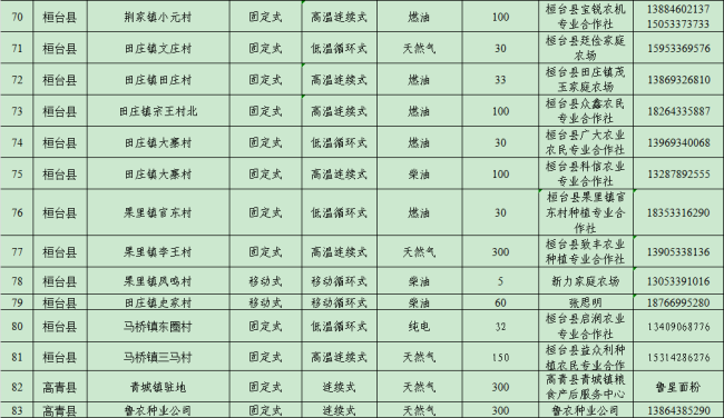 附:淄博市粮食烘干中心和履带式玉米收获机机主联系表