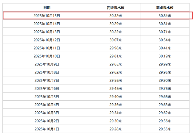 金秋十月,泉城济南在近期充沛雨水的滋养下,地下水位连日稳步上涨,终于迎来历史性的一刻。10月15日,天下第一泉风景区内的黑虎泉再度释放磅礴气势,地下水位攀升至30.84米,不仅成功突破2004年8月30.82米的历史大关,更一举跃升至有水文记录以来的全新高度。