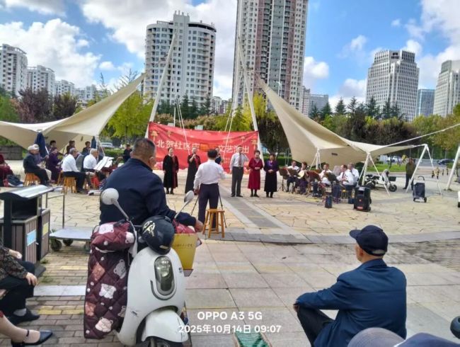 岁岁重阳,今又重阳。近日,烟台莱山区滨海路街道北贺社区文化广场戏韵悠扬、掌声不断,“庆重阳·敬老情”文艺汇演在此倾情上演。活动由北贺社区主办,吸引辖区百名居民共赴一场“家门口”的戏曲盛宴,共叙敬老深情。