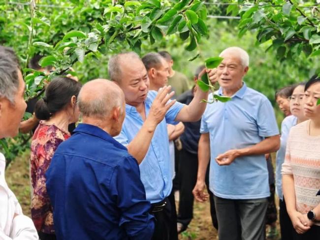 他尤其注重培养一批“示范户”,希望通过他们的成功,带动更多人参与。袁督村种植大户翁万堂曾是“保守派”代表。高飞虎与他打赌:同一块地,一半按老方法种,一半按新技术管,秋后见分晓。2022年,翁万堂收获第一批秋月梨,顿时心服口服:按高飞虎的技术管理的一半,个大、匀称、产量高;而按土办法种植的一半,果小、质差、收益低。这也是袁督村第一批收获的秋月梨。因皮薄肉嫩、清甜多汁、无渣核小等优点,这些秋月梨一经上市就倍受追捧,地头价每斤5到10元。实实在在的收益,是最有力的语言。再看到高飞虎时,村民的眼神都不一样了。