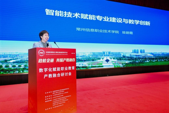 常州信息职业技术学院教授眭碧霞在《智能技术赋能专业建设与教学创新》报告中,指出智能技术可实现专业与产业精准对接,通过教学创新提升人才培养质量,并结合国家级教学成果奖案例,展望了智能技术引领下职业教育的发展前景。