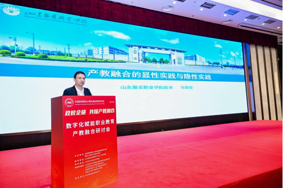 山东服装职业学院校长马培安以《产教融合的显性实践与隐性实践》为题,阐释了显性实践侧重将产教协同成效转化为区域经济动力,隐性实践则注重产业要素,渗透教育教学各环节,为院校构建产教融合体系提供理论支撑。