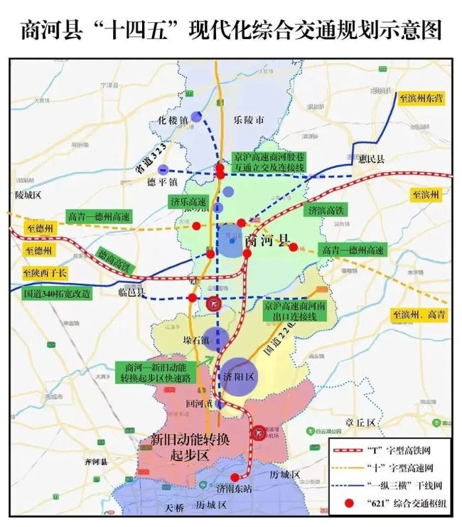展望“十五五”,商河交通雄心勃勃,将坚持高质量、高效率发展,全面落实交通强国战略,深度对接省会经济圈一体化发展和济南“北起”战略。目标是逐步构筑“周边城市1小时生活圈、省内2小时经济圈、省外3小时发展圈”,最终形成“对外交通快速化、内部交通便捷化、城乡客运一体化、运输服务高效化”的“大交通”格局。具体而言,将全力推进以“T”型高铁网(济滨、德商)、“十”字型高速网(京沪、高德)、“一”字型铁路货运专线(德龙烟)、“四纵三横”交通干线网以及“621”综合交通枢纽为骨架的立体交通网络建设。