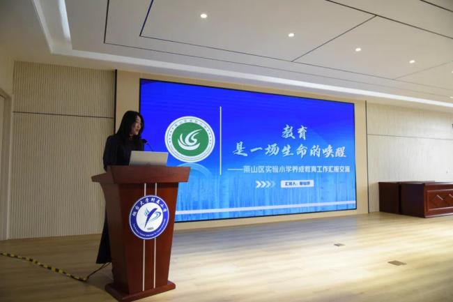 观摩结束后,与会人员移步报告厅,进入典型经验交流环节。来自莱山区多所中小学的七位代表依次发言,围绕“青少年素养提升与成长”的主题,分享了各校在养成教育方面的实践探索与思考成果。