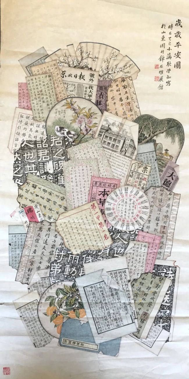 耿学知,周村人,自幼浸润笔墨书香。12岁起,他追随父亲研习书法与绘画,日复一日的勤学苦练,为日后深耕“锦灰堆”艺术筑牢坚实功底。1998年,耿学知正式随父专攻“锦灰堆”创作,潜心体悟这门古老艺术的精髓。2011年,他在周村古商城创办“锦灰堆”展览馆,这里自此成为传承这门非遗技艺的重要阵地,至今仍持续向公众展示其独特魅力。