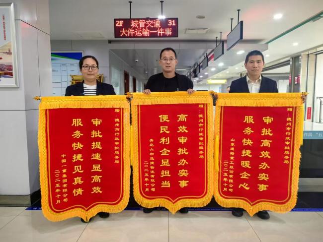 从厂区到运输目的地,从纸质材料到全程网办,从企业跑腿到部门协同,德州以审批服务改革破解运输堵点,不仅为企业节省了时间成本,更筑牢了产业链供应链稳定的“交通基石”。正如三面锦旗上的鎏金大字,这份“速度”与“温度”并存的服务,正让“九达天衢”真正成为大国重器的“畅行之道”。
