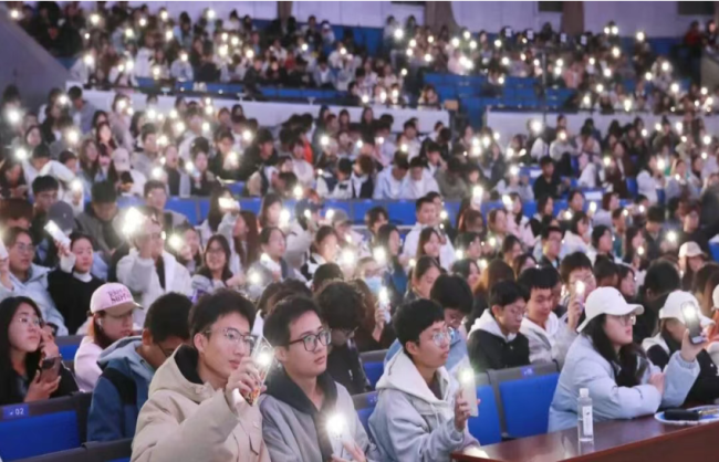 宣讲中,温情与敬意交织,讲述环节《妈妈的思念》以细腻视角深情讲述牺牲民警的英雄事迹,真挚的情感打动了在场每一位师生,不少人热泪盈眶。