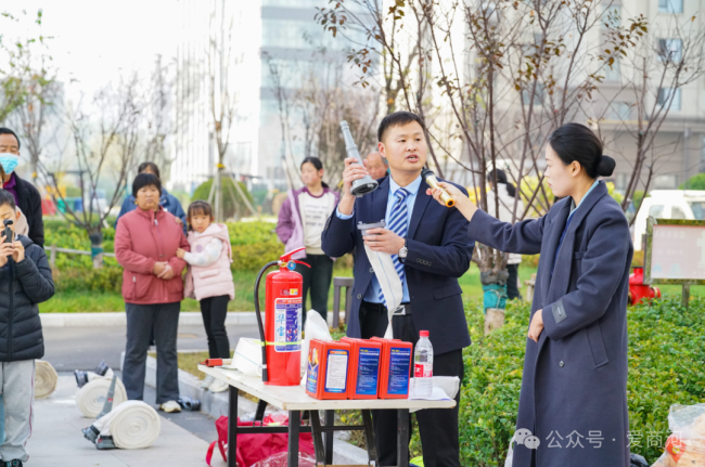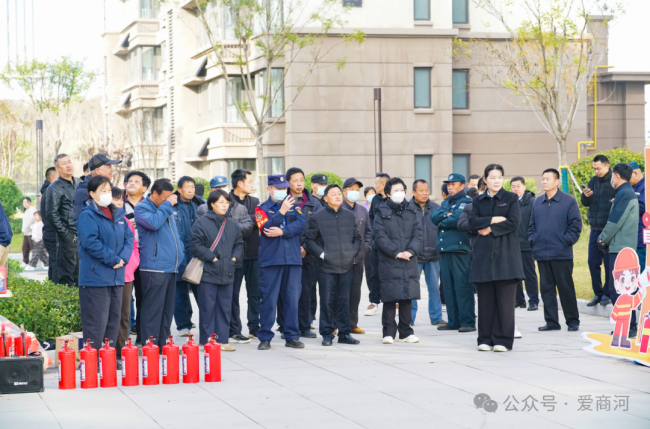 11月9日,济南商河县许商街道联合国投物业办以“聚焦消防安全共筑平安社区”为主题,在国投・玖和府小区组织开展消防应急演练活动。