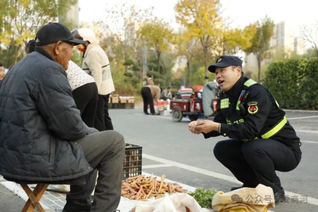 早晚时段是晨曦便民摊区的经营高峰期,为保障摊区有序运转与民生需求平衡,城管执法人员提前抵达摊区开展日常管护工作。执法人员严格落实摊区管理规范,引导摊主在划定区域内经营,做好摊位周边卫生清洁,确保摊区环境整洁。通过“管理+服务+关怀”的温暖执法模式,不仅让晨曦摊区始终保持整洁有序,更让摊主经营安心、市民消费舒心,让初冬的商河充满民生温度。