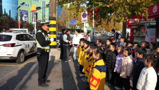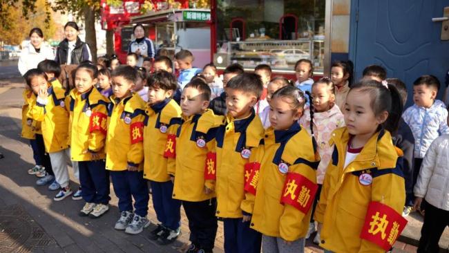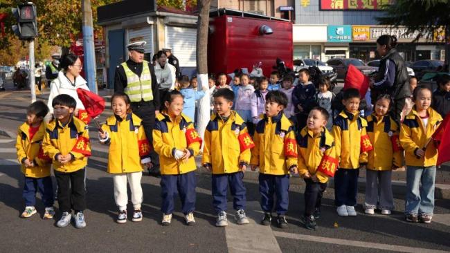 11月11日下午,济南莱芜街头出现“小交警”,他们身着黄色衣服,戴着红色“执勤”袖标,有模有样地劝导过往骑车人戴头盔,这一幕“萌式劝导”让路人直呼:“处罚力度很社死!”