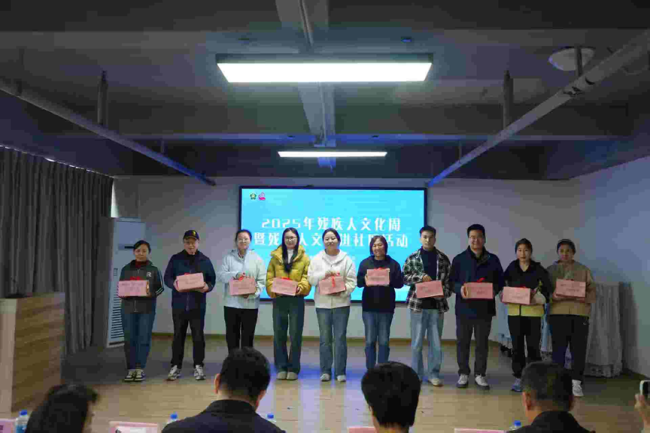 活动在气势恢宏的锣鼓表演《中国龙》中拉开序幕,铿锵的节奏瞬间点燃了现场氛围,台下掌声与欢呼声此起彼伏。热闹的氛围里,爱意也在悄然流淌:在现场的文化产品赠送与赠书仪式上,工作人员将精心挑选的书籍和文化产品逐一送到社区代表手中。这份“家门口的文化关怀”,不仅切实回应了残疾人朋友日益多元的精神文化需求,更让大家在便捷、温暖的服务中,真切感受到归属感与幸福感。