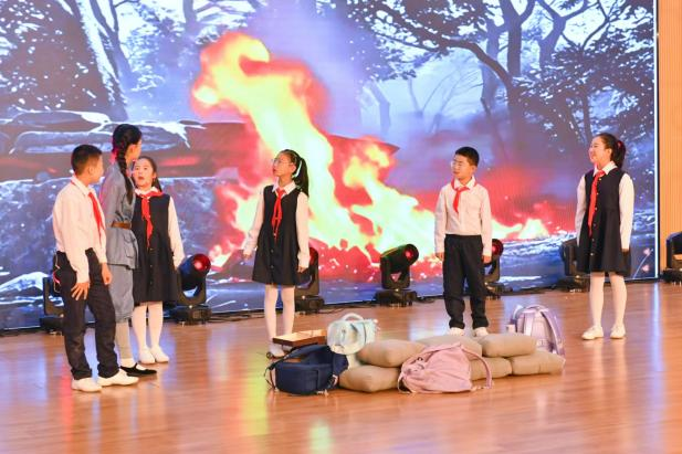 舞台上,小演员们全情投入,用真挚的情感和富有张力的表演,将角色的困惑、追寻与顿悟演绎得淋漓尽致。精妙的剧本、动人的音乐、富有创意的舞美设计,将丹山岭战役徐玉珠的形象刻画的淋漓尽致。