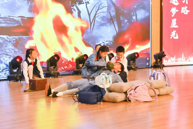 剧目巧妙地将丹小学子的阅读体验与对丹山岭的历史文化探索相结合。故事围绕《鏖战青即》丹山岭战役展开,小主角们在阅读中“穿越”到不同的历史时空,用行动感悟丹山战役的艰辛与美好生活的来之不易。