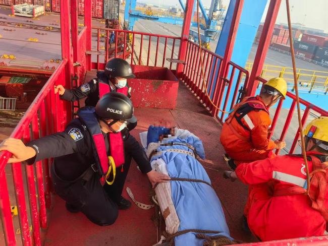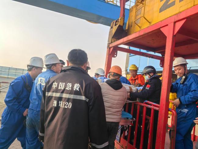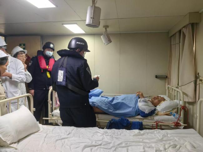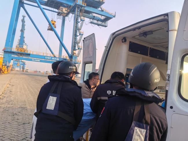 11月29日,山东边检总站潍坊边检站接到求助称,1名中国籍船员在作业时被钢板压伤,丧失行动能力,急需入境就医。