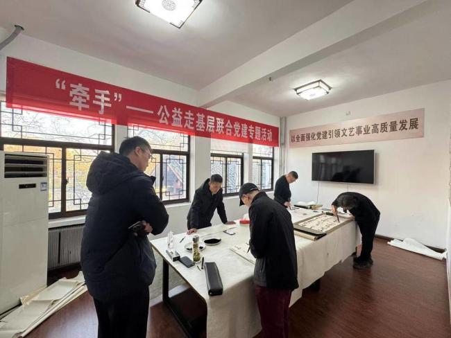 活动期间,团队先后走进临朐县和青州市开展“牵手”——公益走基层联合党建捐赠活动及“艺术进基层·党建暖民心”采风创作笔会。活动现场,向李家庄村委、西张村委、青州经济开发区柳沟村捐赠篮球架等体育器材,既为村民开展体育锻炼、丰富文化生活提供了硬件支持,更搭建起党建引领下多方联动服务基层的坚实桥梁,有效推动了文艺与体育资源向乡村一线下沉。随后,在基层举办的创作笔会上,书画家们挥毫泼墨、以笔寄情,创作了反映时代气象、贴近百姓生活的美术、书法作品100余幅;围绕文艺如何更好地服务基层、贴近群众展开交流探讨,在笔墨点染与思想碰撞中,实现文艺创作与人民情感的同频共振,凝聚起文化赋能基层发展的强劲力量。