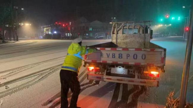受冷空气影响,12月12日晚,潍坊市迎来降雪天气,为有效应对雨雪恶劣天气对交通安全的影响,确保雪天辖区道路交通安全、有序、畅通,减少道路交通事故发生,潍坊交警以雪为令,立即启动恶劣天气应急预案,积极部署、迅速反应,全力以赴投入到保安全、保畅通工作中。