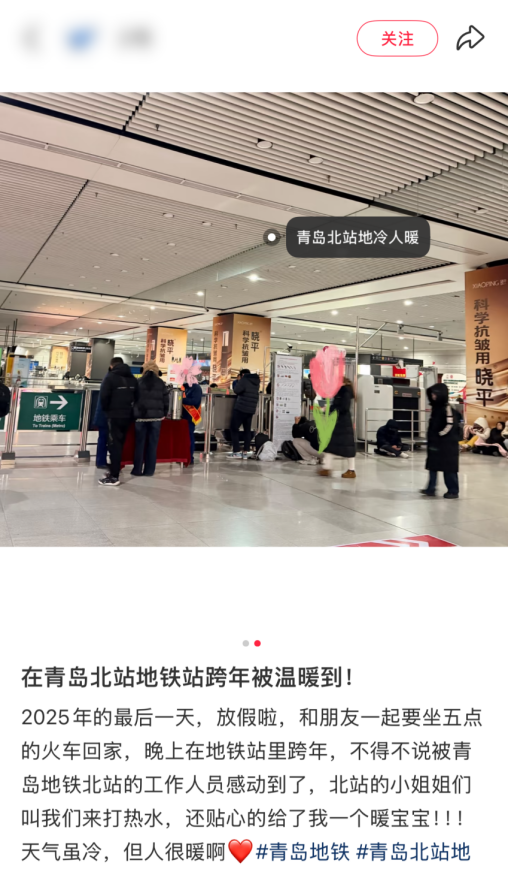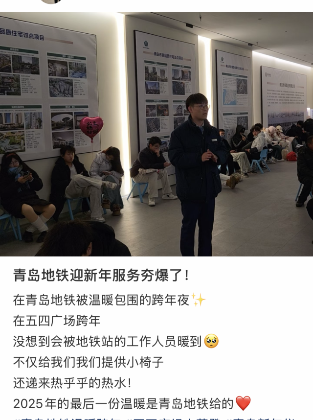 这个新年夜,青岛地铁以7条线路延时运营的坚守、精准调配的运力和暖心备至的服务,为228万人次的市民游客铺就了平安归途,为近300名等候日出的乘客保留了温暖港湾。