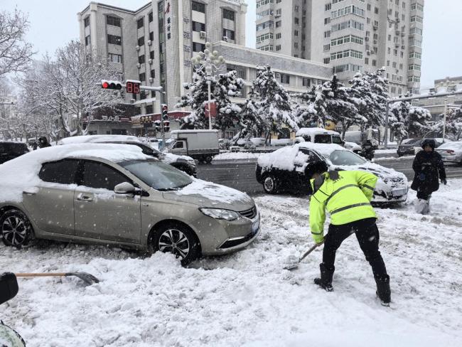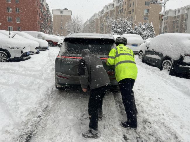 1月11日清晨,威海市迎来今冬最强降雪,暴雪橙色预警与道路结冰橙色预警同步来袭。面对极端天气,威海交警以雪为令、全员出动,在严寒中化身“推车侠”“铲雪官”“撒盐官”,用坚守与温情守护市民出行平安。