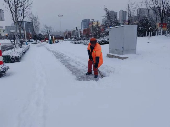 莱山经济开发区以机械作业为主、人工清雪为辅,迅速投入清雪工作,保障市民安全出行。