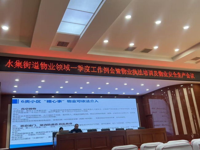 水集街道组织委员刘永安同志在会议中强调,物业管理涉及千家万户,是基层社会治理的重要基石。依法、公正、规范的执法是维护业主合法权益、督促物业企业履责、保障社区和谐稳定的关键环节。他要求全体参训人员要以此次培训为新的起点,将学习成果转化为推动工作的强大动力和实际能力,不断提升执法的专业化、规范化水平,做到严格规范公正文明执法,同时要注重柔性管理和服务导向,切实解决好群众身边的“关键小事”,努力提升居民的幸福感、安全感和满意度,为构建共建共治共享的基层治理新格局贡献力量。