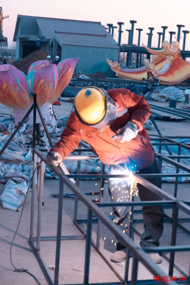 玉黛湖景区全面焕新升级,正式定名为“淄博花灯齐彩城”。这座集非遗花灯之美、齐文化之韵、沉浸式夜游之趣于一体的特色文旅综合体,将构建“一核、一带、五区”的功能布局。其中,一期的核心观光体验区聚焦花灯体验、旅游演艺、基础设施升级与景观优化四大板块,目前各项提升工作正稳步推进,将于2026年春节前正式开园迎客。当下,园区花灯已进入紧张的制作阶段,匠心打造的特色花灯将为游客带来全新视觉盛宴。