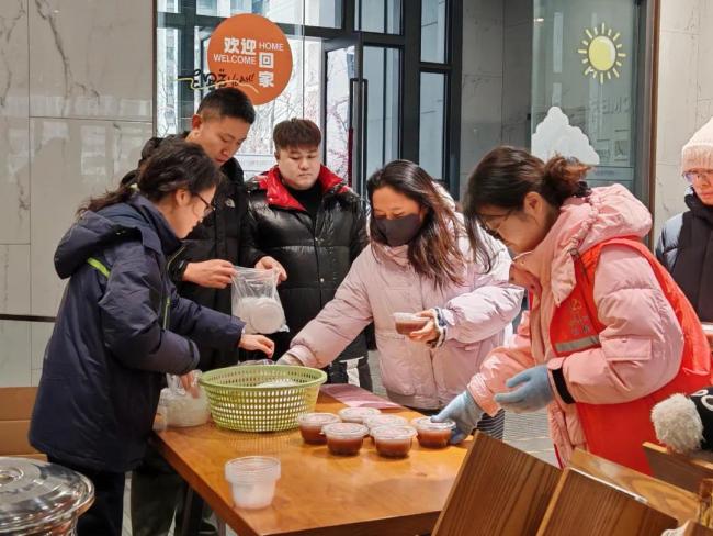 金滩社区融合非遗与民俗,开展金箔画DIY活动;福地隆城社区组织腊八蒜制作,增进邻里情谊;学韵社区联合物业发放腊八粥,传递节日祝福;观海社区则精心组织“腊八送温暖”活动,将热粥、福字和节日关怀送至新就业群体及独居老人手中,营造温馨祥和的社区氛围。