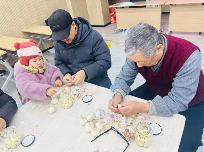 清泉康养中心里暖意融融,老人们围坐一起,亲手腌制腊八蒜、品尝热腾腾的腊八粥。蒜香醋香交织,粥暖人情更暖,传统习俗在这里化为敬老爱老的温情实践,让这个腊八节充满感动与回忆。