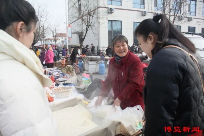 “一大早从淄川城区过来,就为了吃这口早餐。”赶集前,到大集旁的早餐摊,吃一碗豆腐脑、来几根热乎乎的油条,是做农贸生意的李楠每次赶同古大集的标配,“这里的豆腐脑,味道介于本地酸浆豆腐脑和南方卤水豆腐脑之间,搭配咸菜沫、韭花酱、青椒酱的吃法,非常独特。”