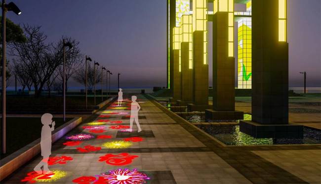 市人民广场彩灯布设亮点纷呈,成为本次亮化的核心看点。广场中央将打造巨型中国结灯光装置,通过绯红丝线经纬交错,既勾勒出吉祥喜庆的新春氛围,更象征着各民族情谊紧密相连。跌水池区域的光艺设施设计独具匠心,采用阵列的圆环向北依次延伸,形成极具震撼力的视觉透视效果。广场草坪上,将摆放一幅幅展示威海城市建设成果、特色人文景观的灯绘作品。灯绘作品错落摆放,创作中借鉴威海剪纸简洁流畅的构图手法与鲜明的寓意表达,同时融入3D打印、AI图像处理等新型技术,让灯绘细节更细腻、画面更生动,尽显威海城市魅力。